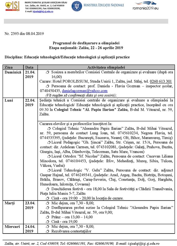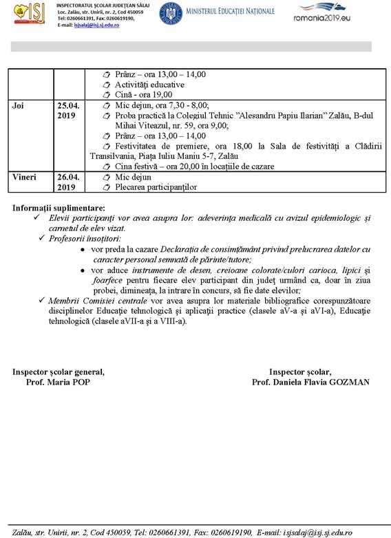 Clasament național și elevii calificați